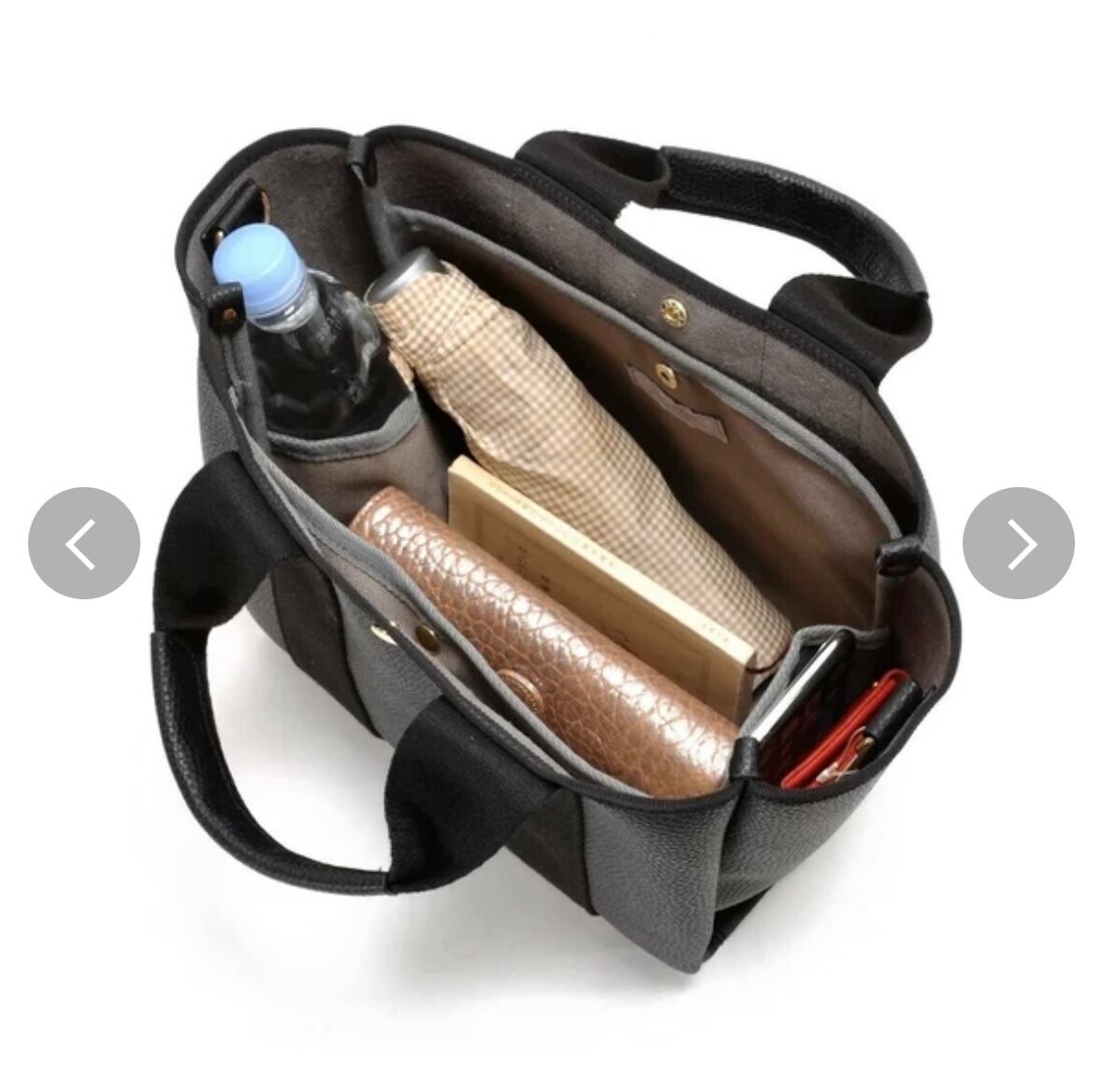テープハンドルとのカラーコンビが大人っぽい人気の2wayトートバッグ。