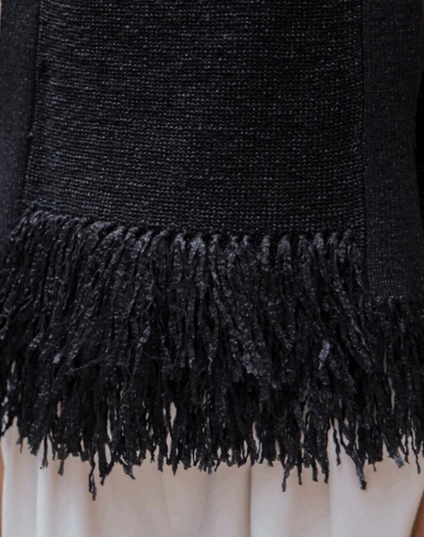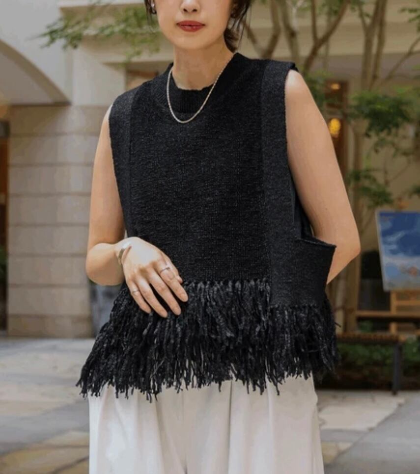 フリンジデザインがフェザー感を演出しているので1枚で着映えさせてくれるアイテムです。