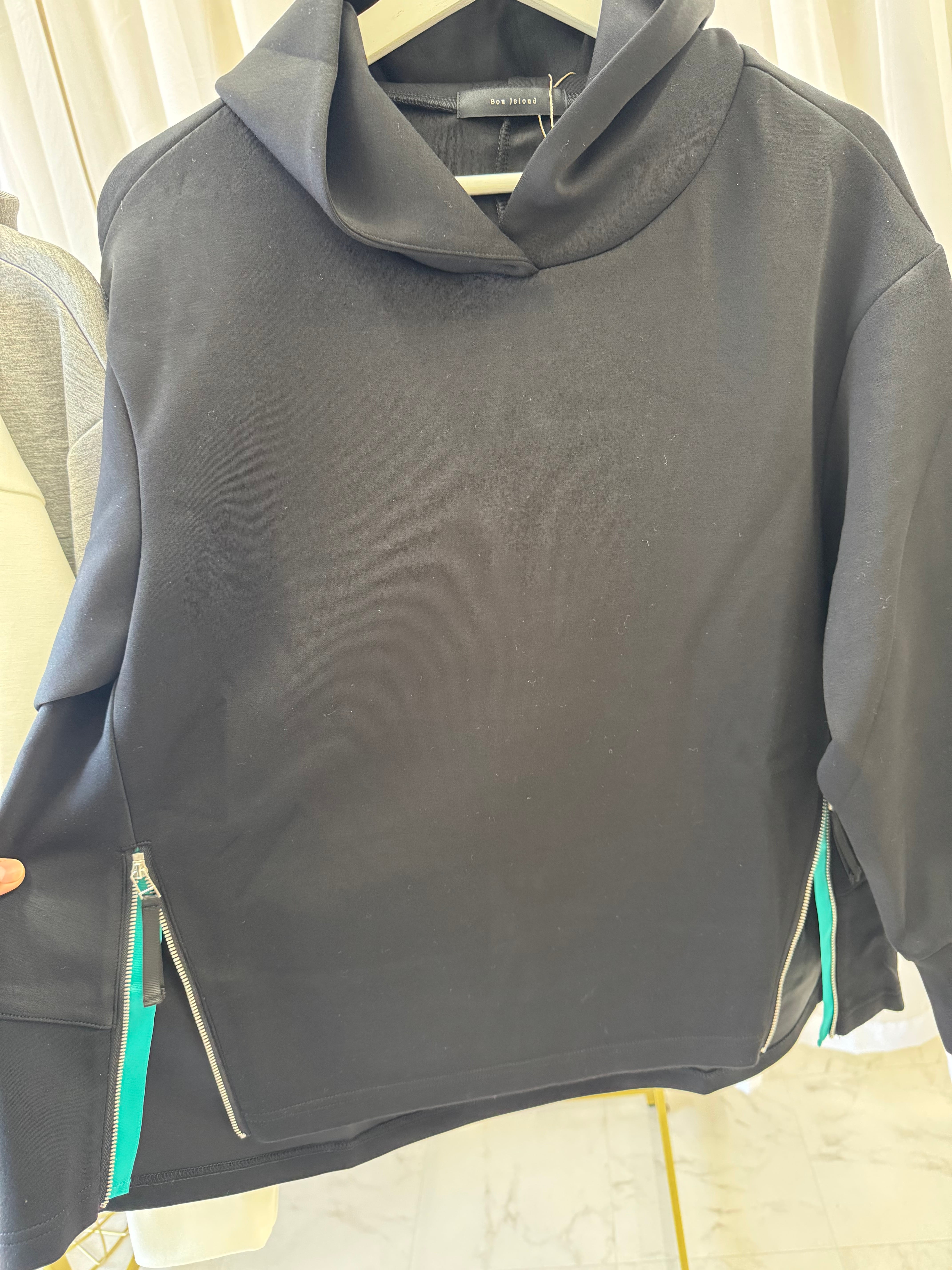 サイドZIPがアクセント。コクーンフォルムが特徴的なフーディダンボールプルオーバー。