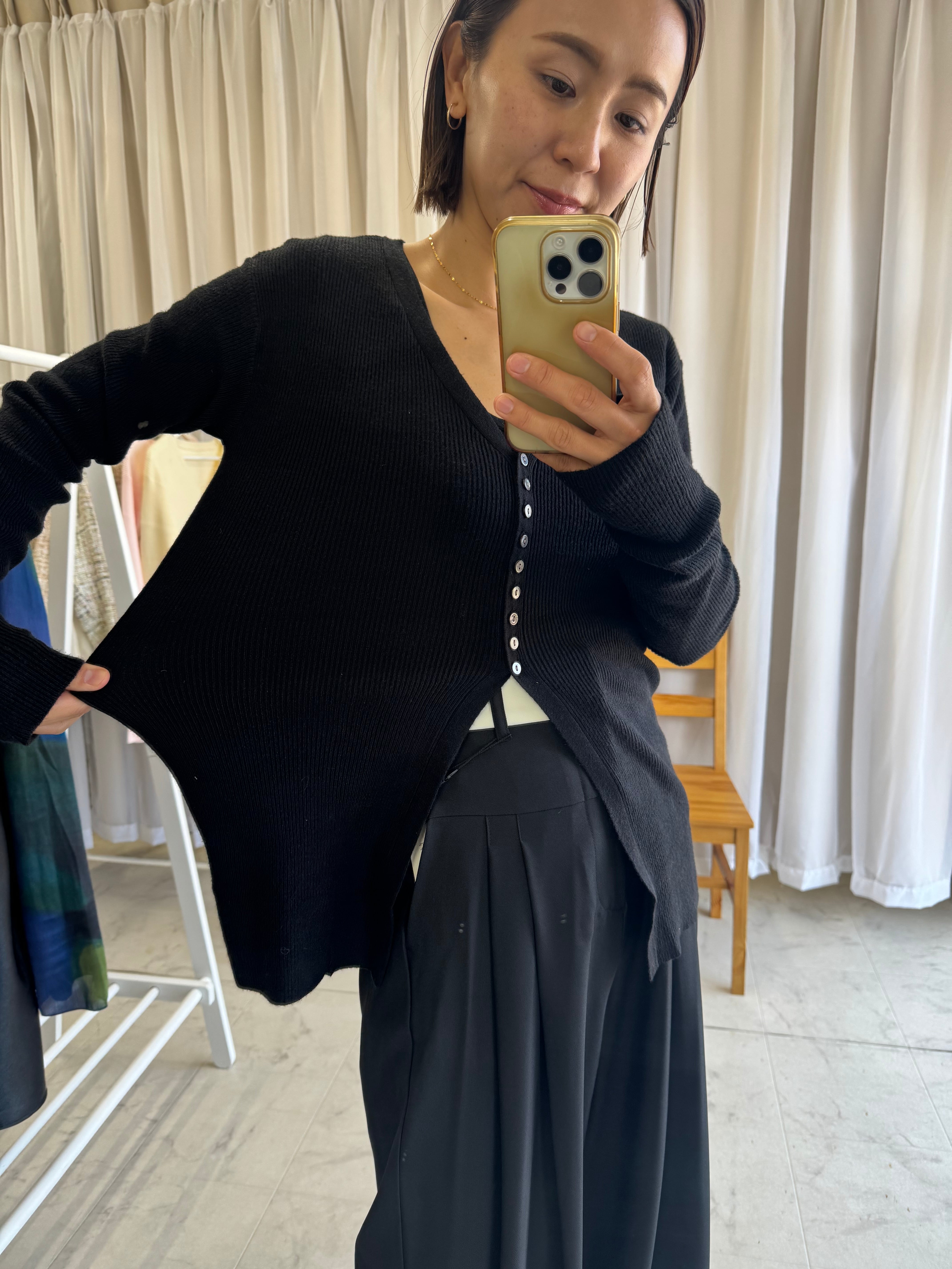 前開き仕様のため、羽織としてもトップスとしても着回し可能。