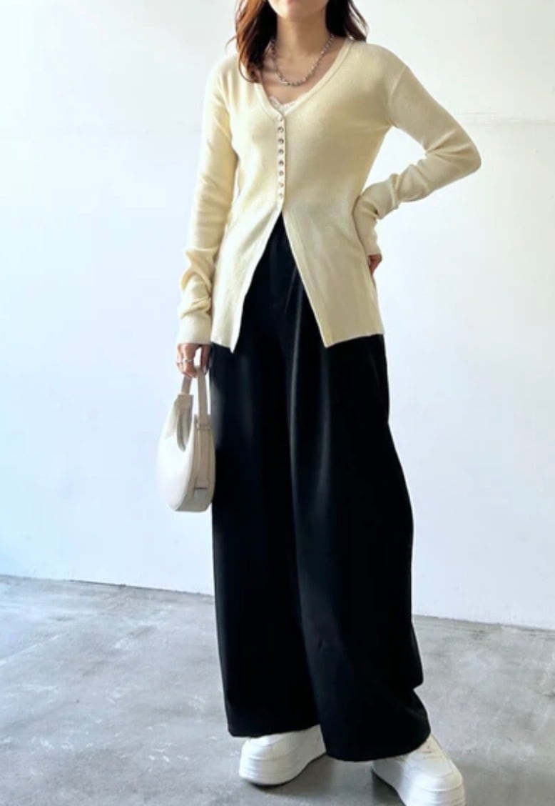 パンツ・スカートどちらにも合わせやすく、通勤から休日スタイルまで幅広く活躍します◎