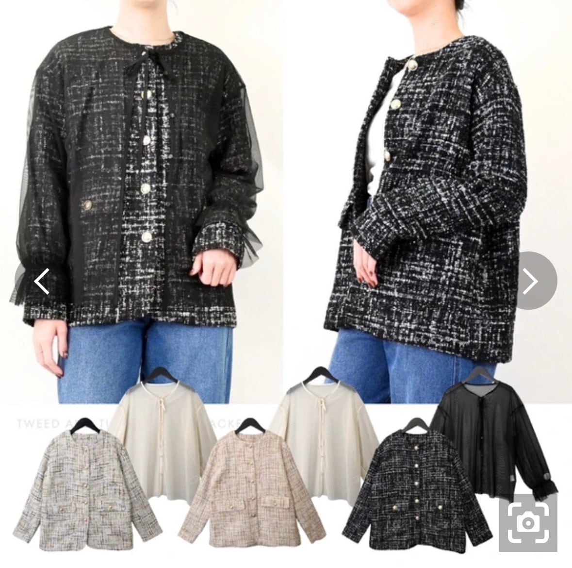 ツイードxチュール レイヤード ジャケット