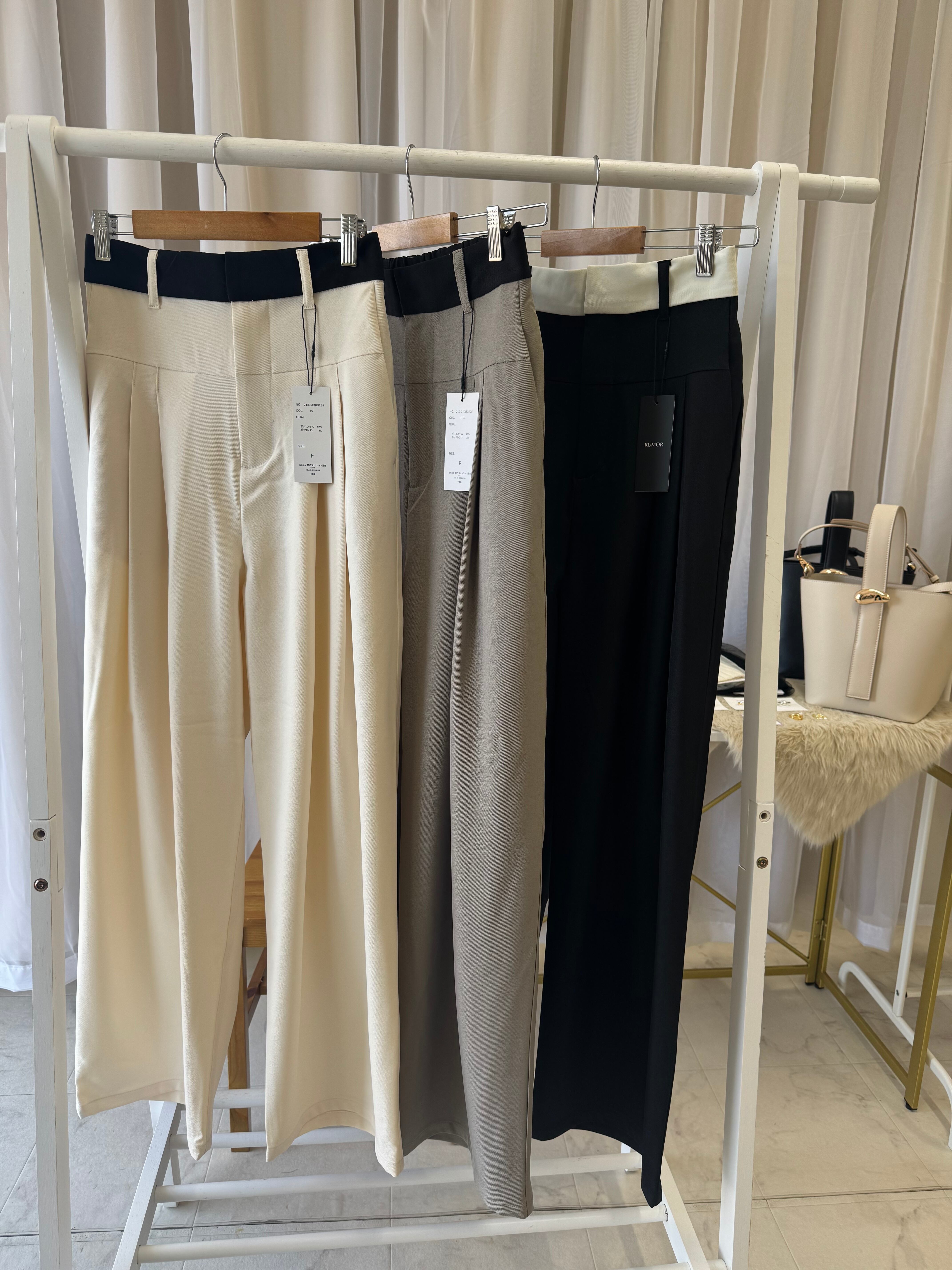 ウエストの配色ベルトが程よいアクセントになり、トップスインのスタイリングも映えます。