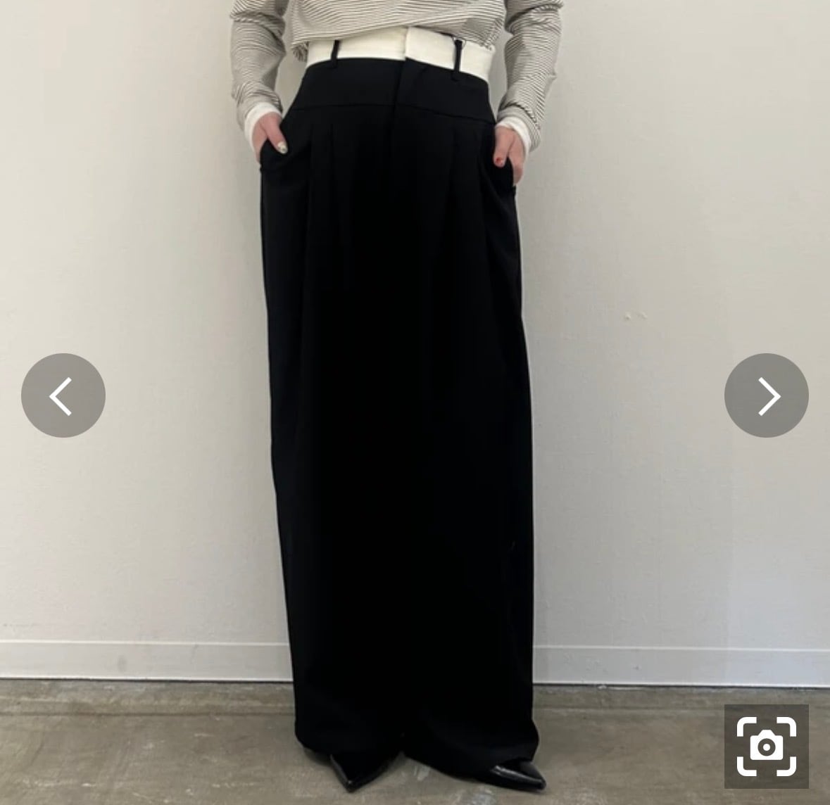 タック入りの丸みのあるラインが体をきれいに見せ、ウエスト後ろゴムで穿き心地も快適。