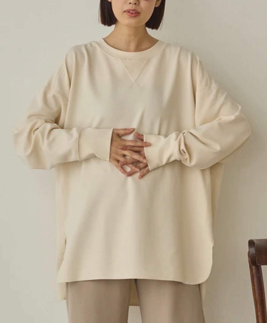 ストレッチカットジョーゼット裾ラウンドプルオーバー