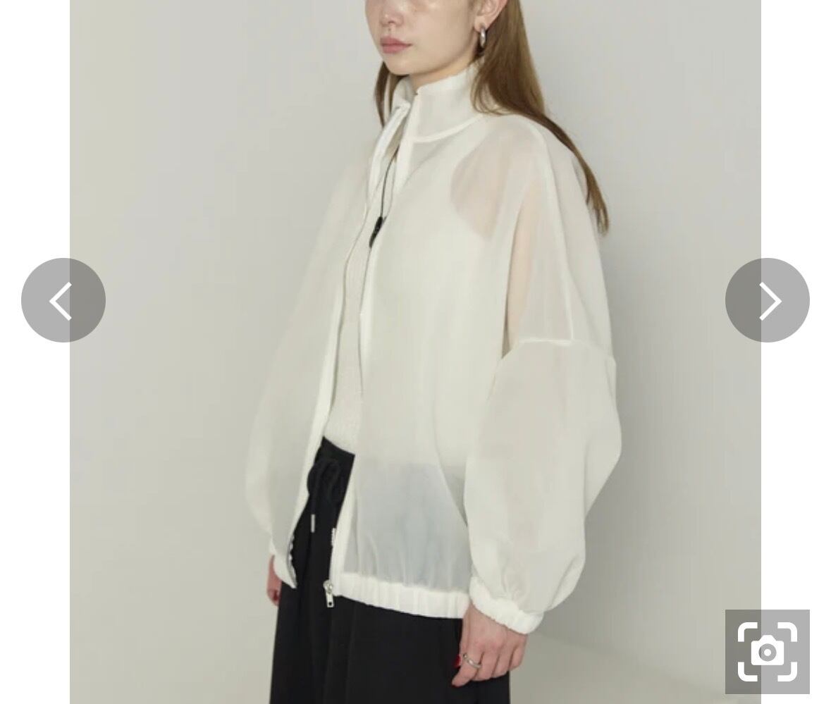 スポーティーなトラックジャケットの意匠を、シアーな素材使いでモードにアップデートしたスタンドジップブルゾンです。最大の特徴は、ダンボールニット特有の構築的なシルエットが生む「空気を含んだようなボリューム感」と、中身が薄く透けることによる「視覚的な軽やかさ」の絶妙なバランス。首元をしっかりと覆う高めのスタンドカラーは、ジップを上まで閉めることでマニッシュでストイックな印象を与え、少し開ければ抜け感のある襟元を演出します。肩ラインを落としたドロップショルダーと、裾や袖口に配したリブの締め付けが、女性らしい丸みのあるバックスタイルを構築。インナーとのレイヤードがデザインの一部となるため、色や柄の合わせ次第で、ミニマルにもデコラティブにも表情を変えることができる、感度の高いレイヤードピースです。