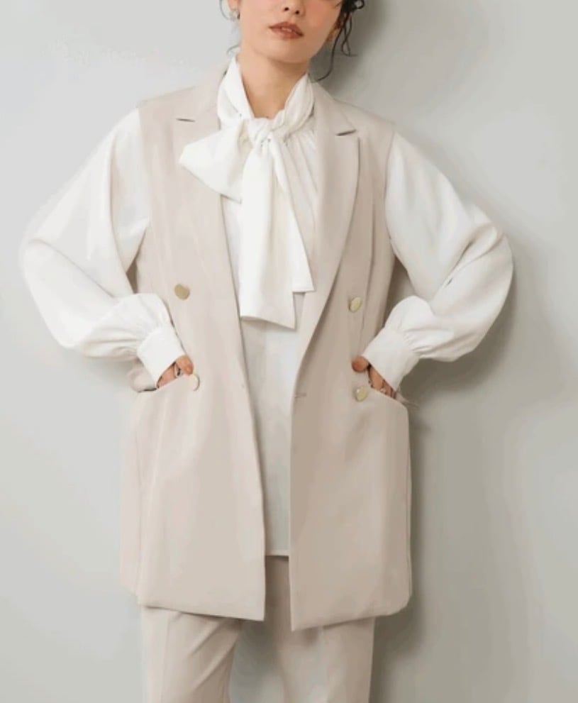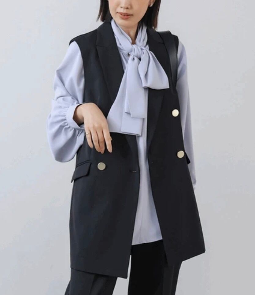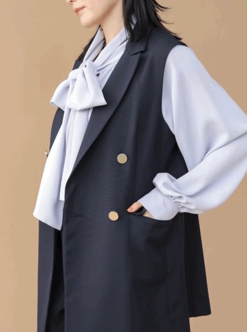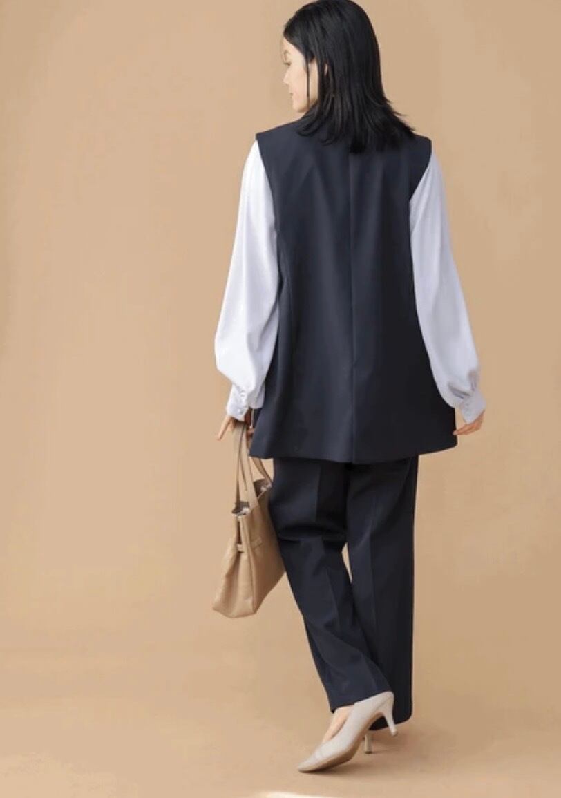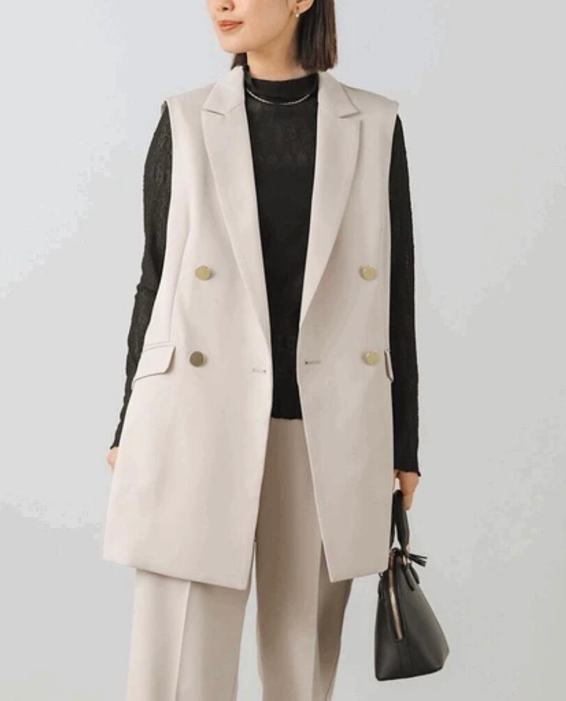 テーラーカラーベスト◇きちんと感とこなれた印象を兼ね備えたロング丈のジレ