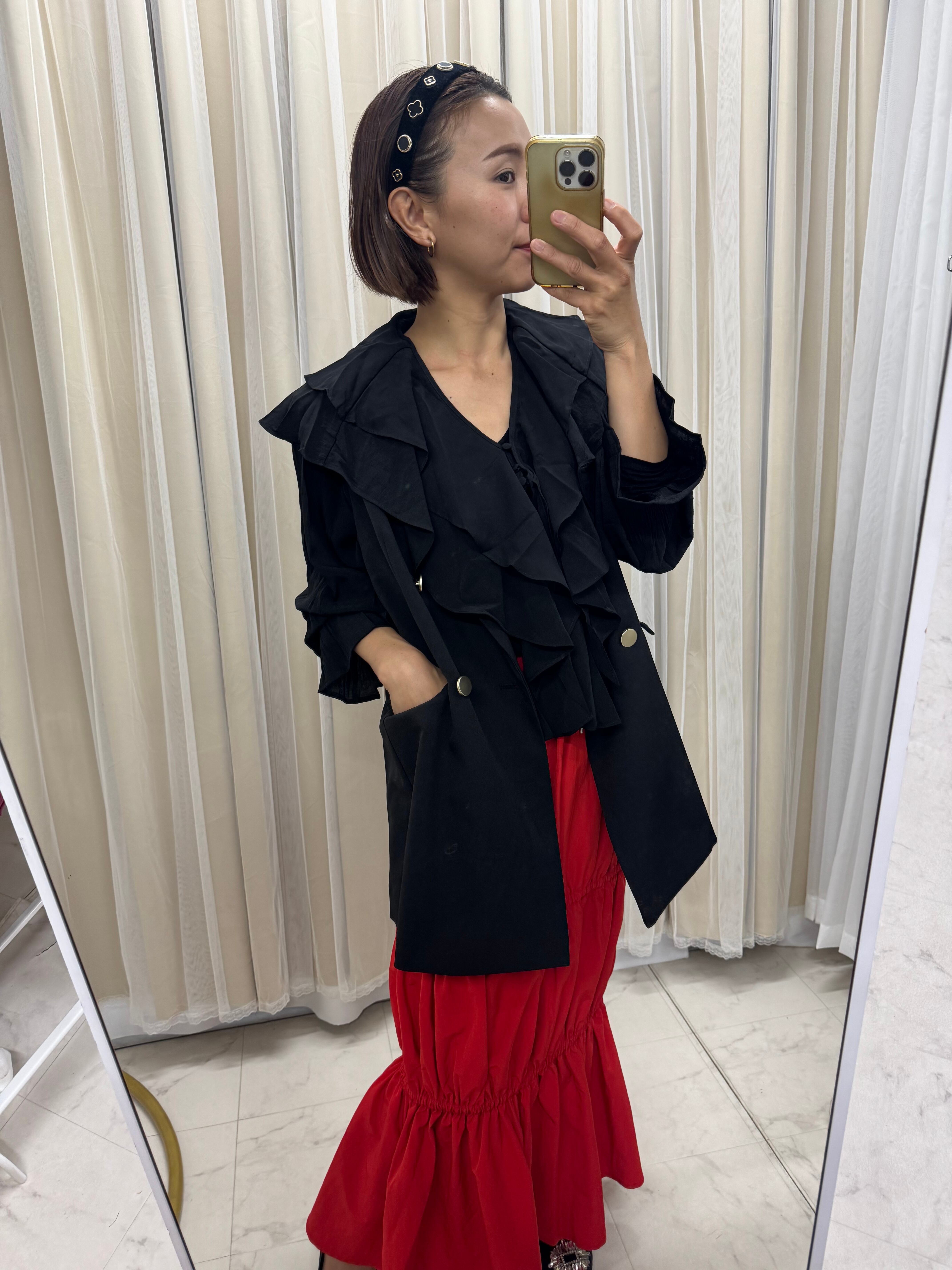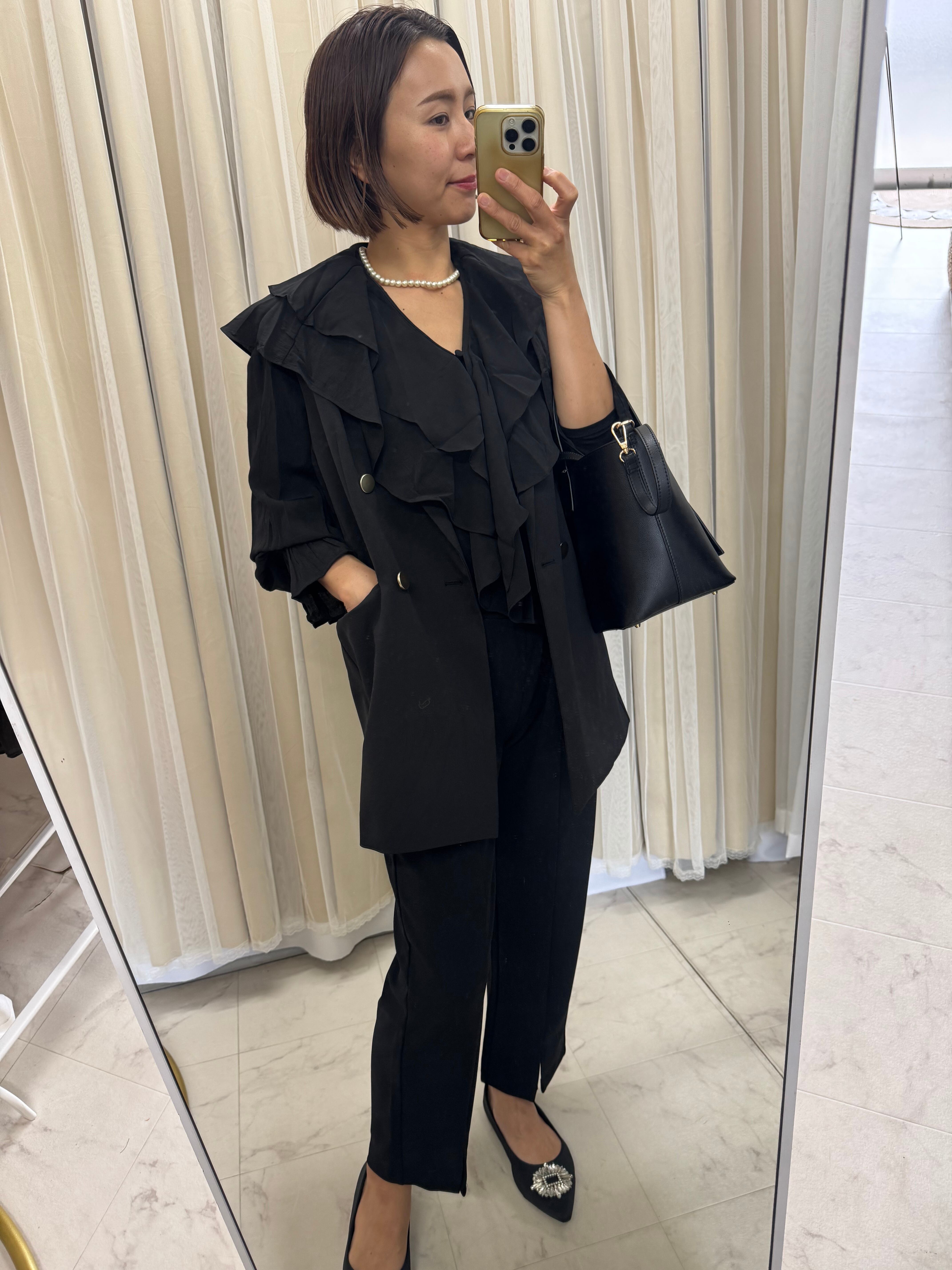 インナー次第で表情を変えられ、ボウタイブラウスやレーストップスを合わせればセレモニーシーンにも最適です。