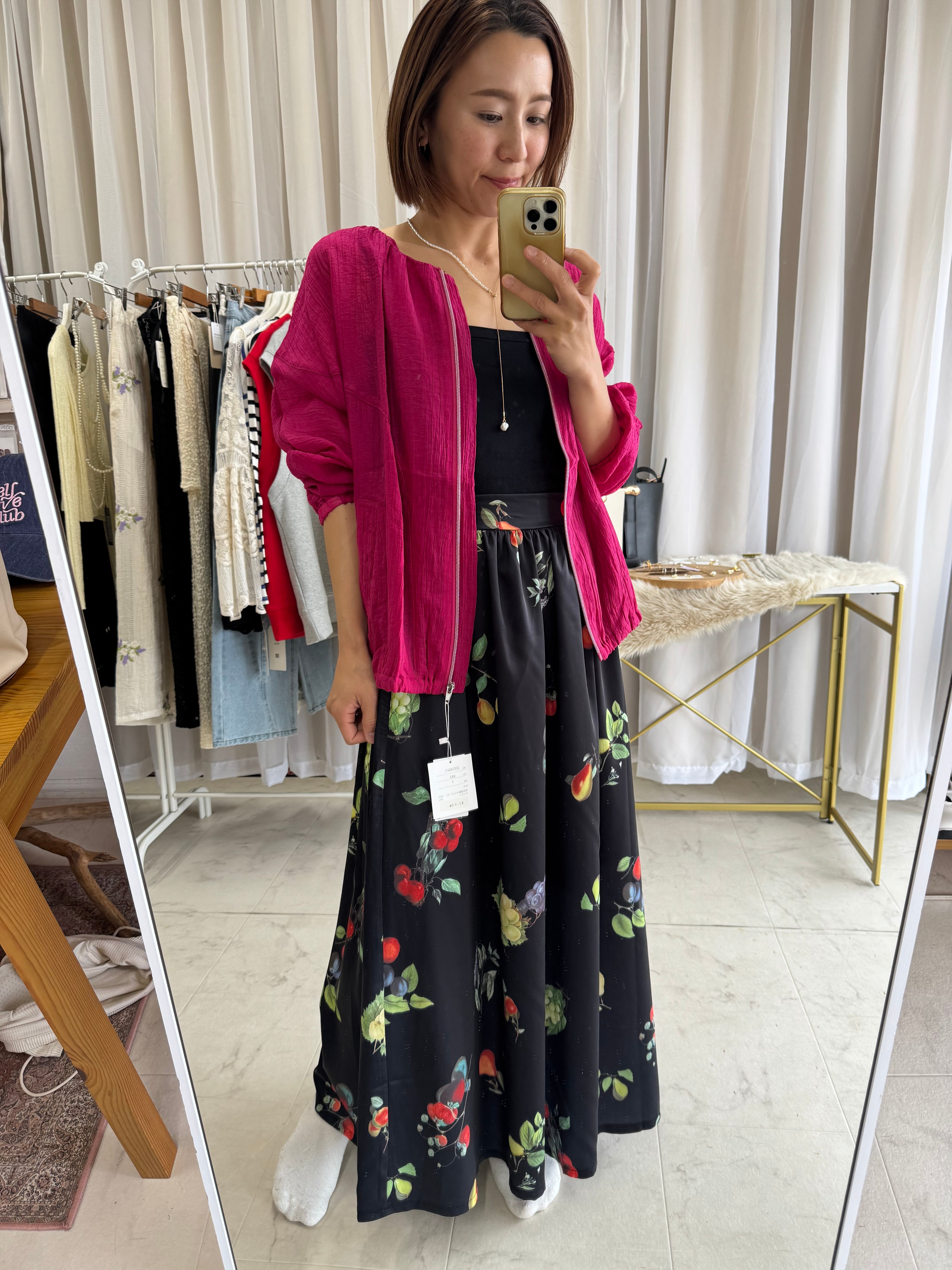 鮮やかなカラーが目を惹くシアー布帛ジップアップブルゾンは、
