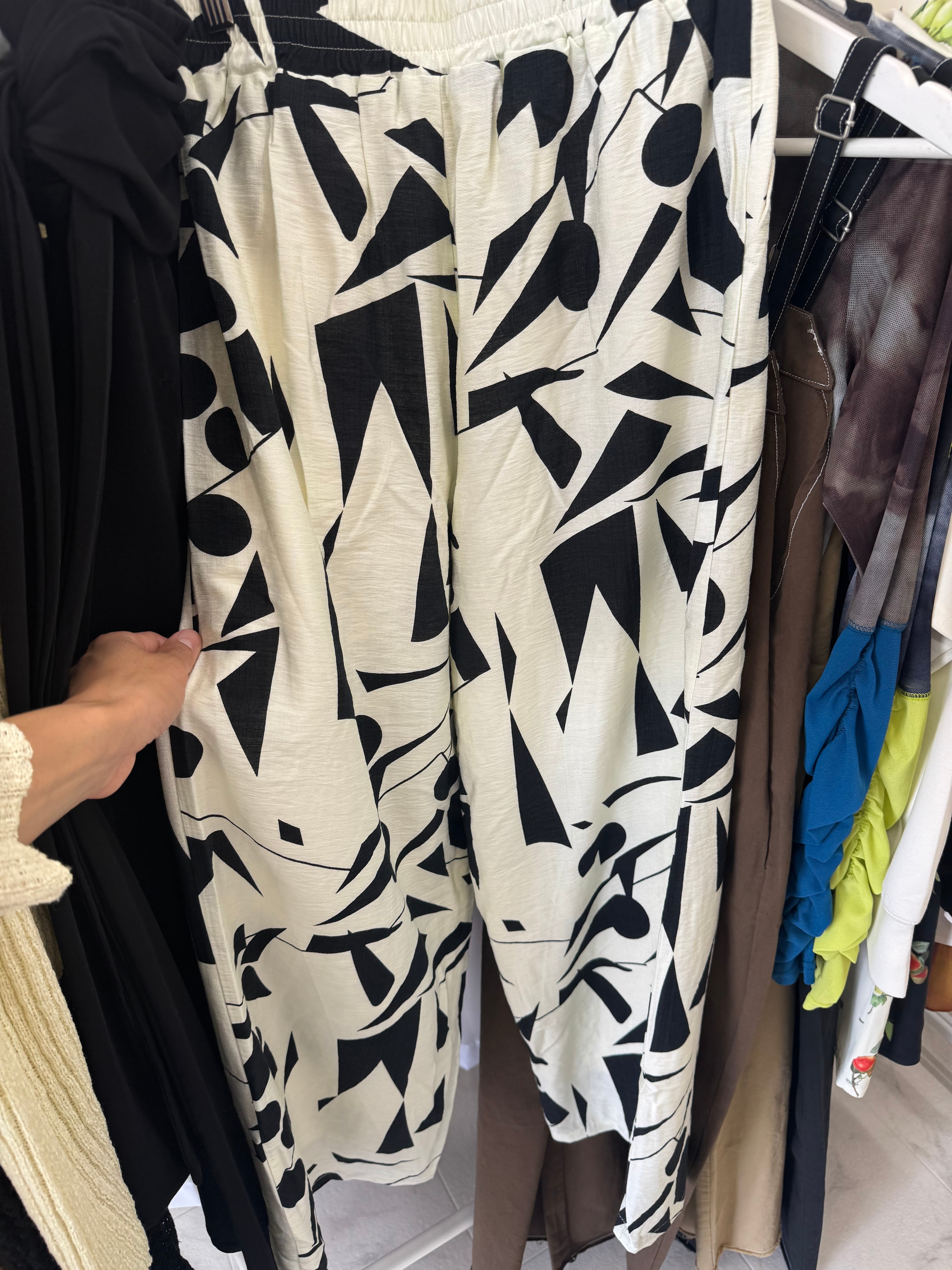 リネンタッチ 幾何柄プリント ラフパンツ
