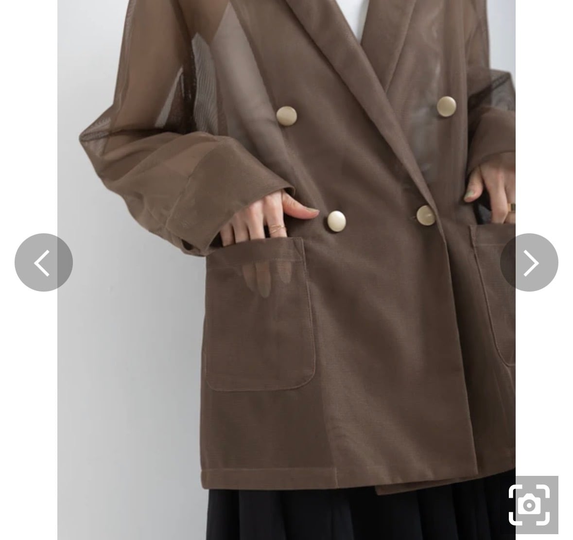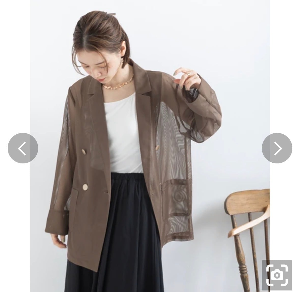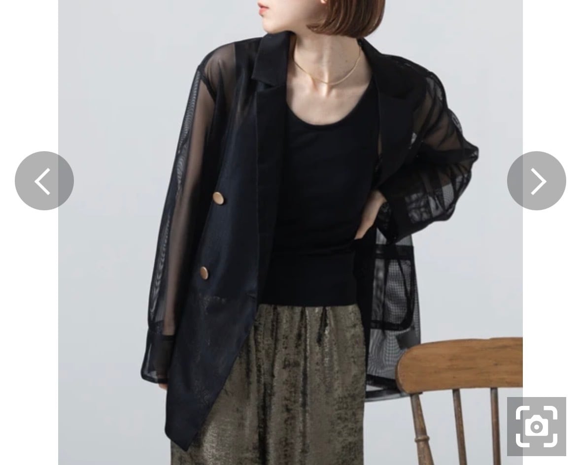 旬を纏うシアーデザイン: ほんのりとインナーが透ける透け感が、コーディネートに抜け感と奥行きをもたらします。カッチリしがちなダブルジャケットも、シアー素材なら女性らしく軽やかな印象に。