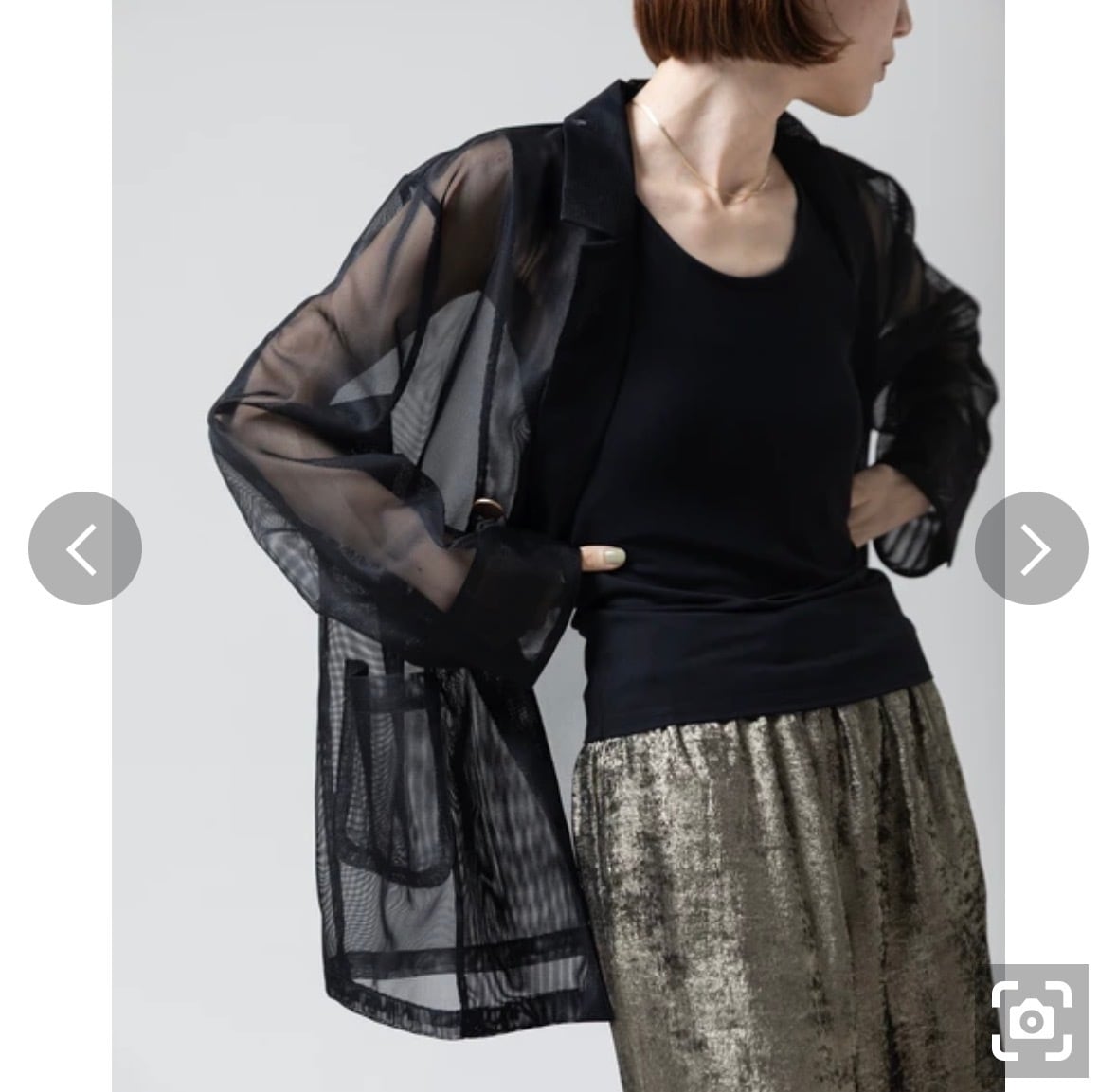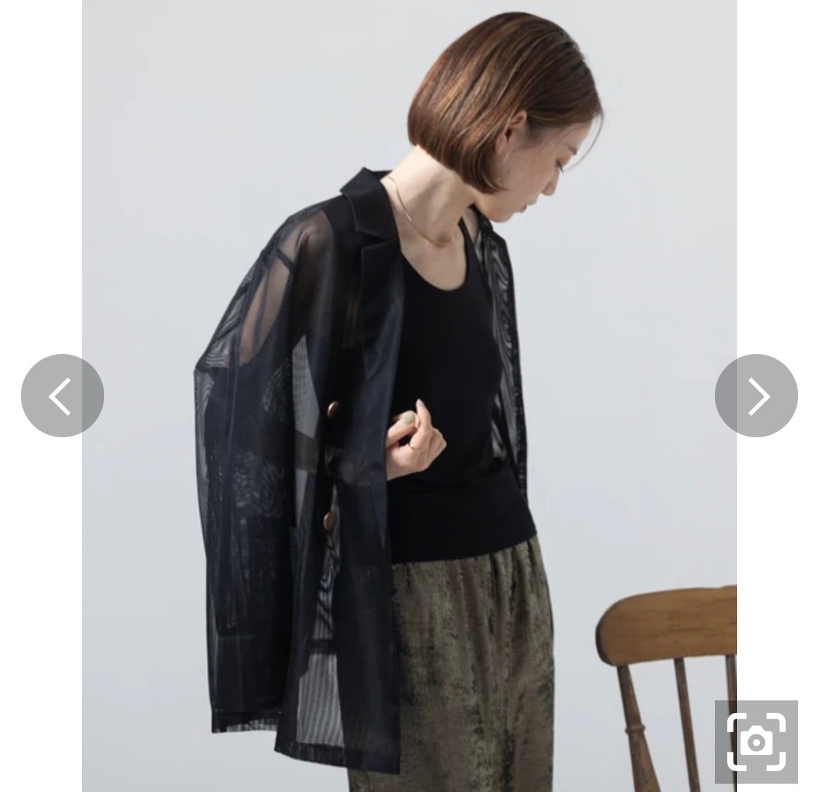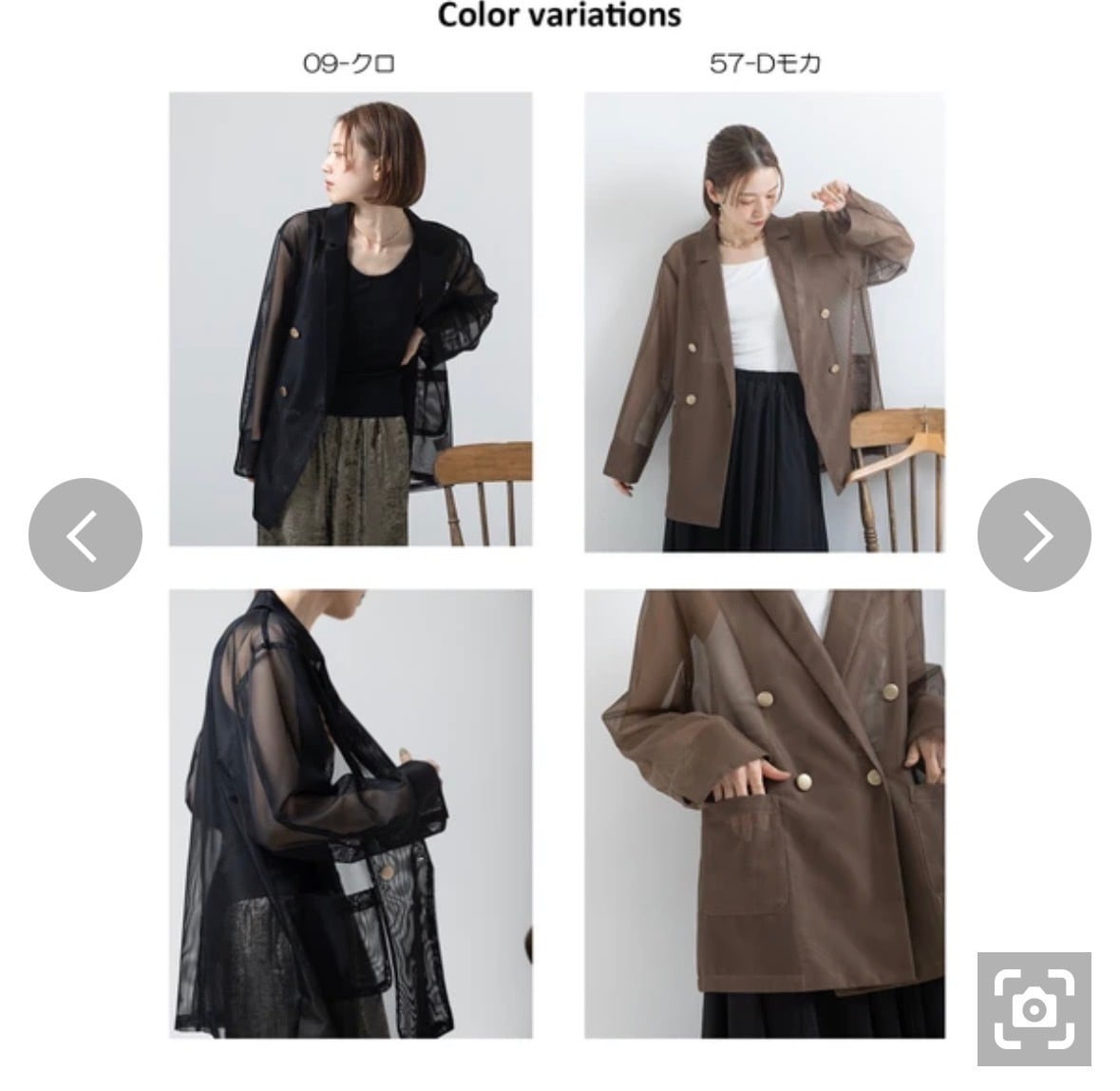 旬を纏うシアーデザイン: ほんのりとインナーが透ける透け感が、コーディネートに抜け感と奥行きをもたらします。カッチリしがちなダブルジャケットも、シアー素材なら女性らしく軽やかな印象に。